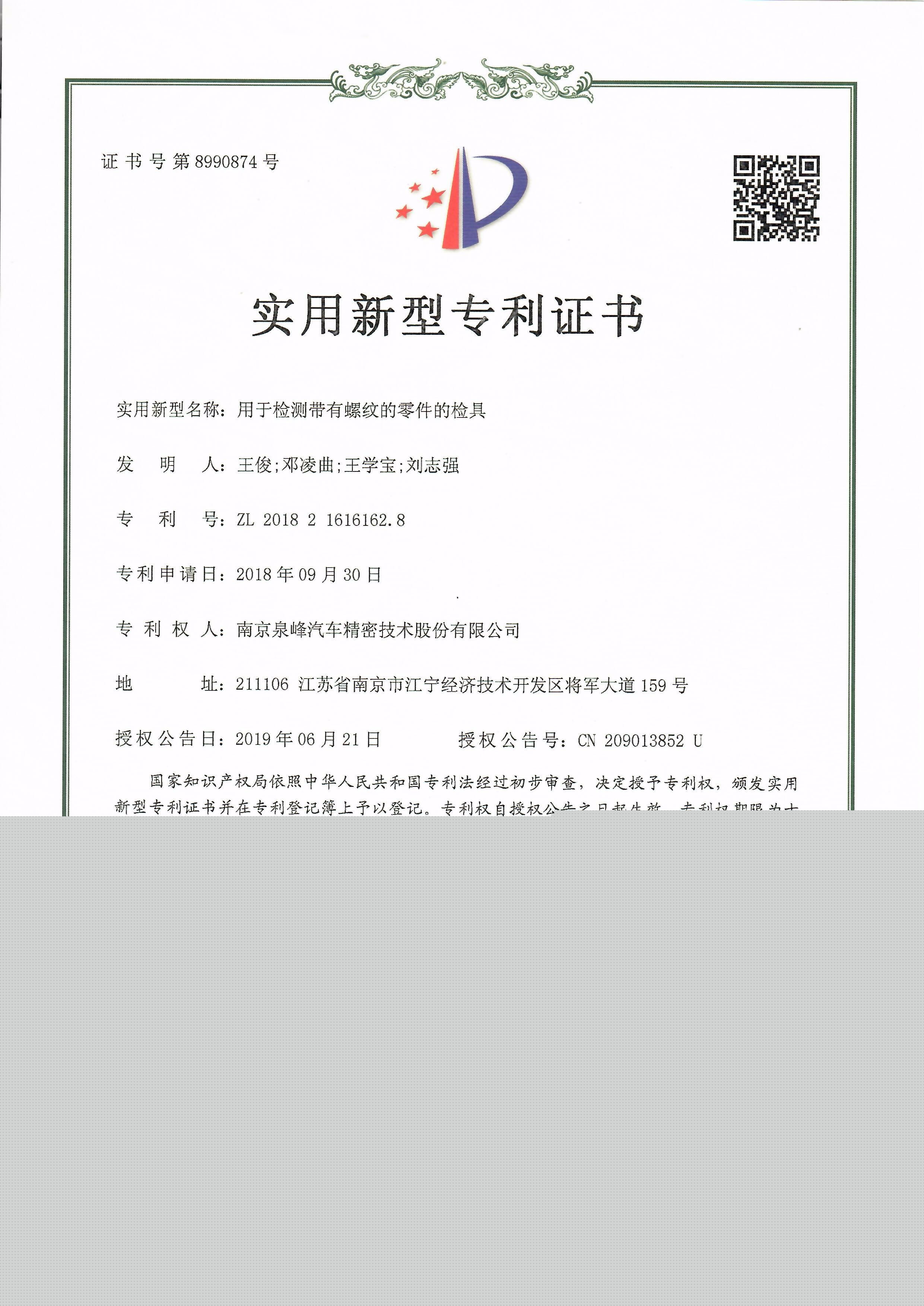 用于檢測(cè)帶有螺紋的零件的檢具